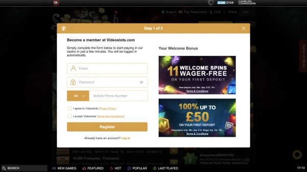 Vi har utformet VideoSlots registrering for å være rask, men også detaljert nok til å beskytte kontoen din. Du vil bli bedt om grunnleggende opplysninger, om å velge innstillinger og om å godta de viktigste vilkårene. Hvis du ønsker det, kan du også velge et velkomsttilbud underveis.